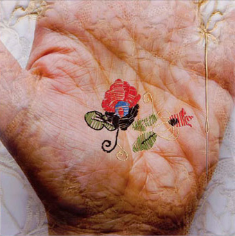 tattoed arms” - raises in this memorial installation. Her parents could not hide